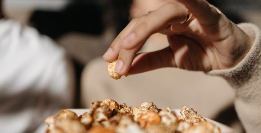 Watching anime and eating snacks